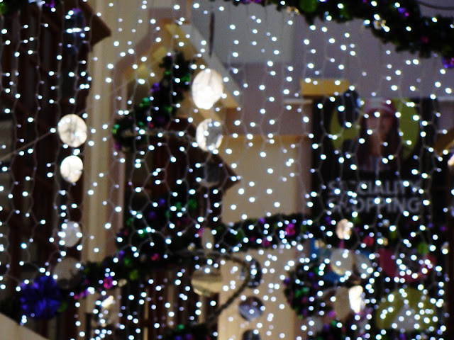 Some of you may say that this photo is blurred, but I say its soft focus! Everything looks so bright, colourful and festive at the moment - shops, houses, windows, trees - its lovely. These are the lights in the Beechwood Arcade. Yes, I took the risk of being told off by that security guard again. Luckily he was nowhere to be seen. Probably stuffing his face with mince pies. Anyway, the photo looked clear on the camera screen but on the computer it was a different story. I still thought it was worth posting though.